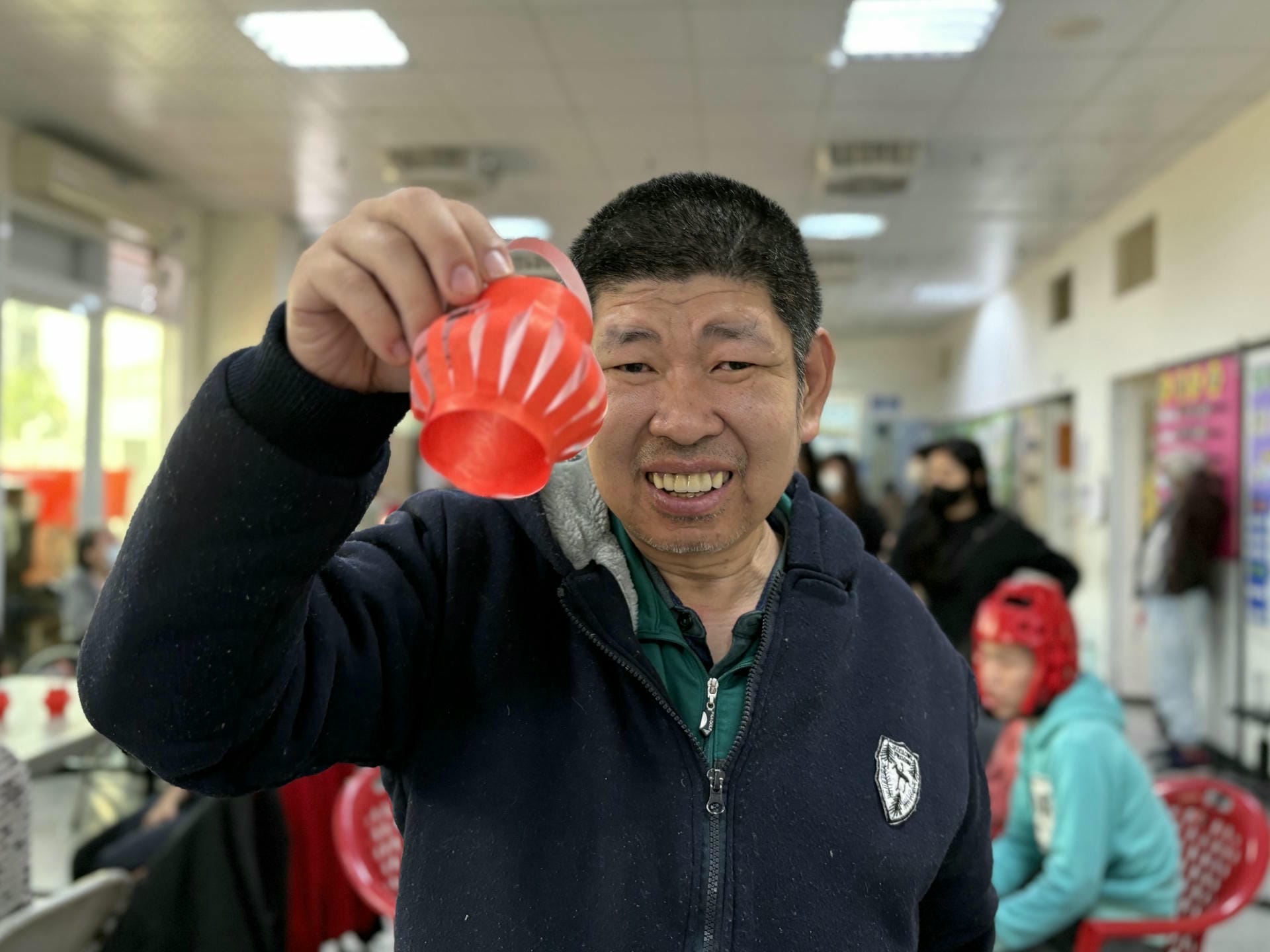 阿融雖然平時安靜,但一開口,音量卻大得驚人,有時還讓人一時聽不太清楚他的意思。當他和同儕之間出現小小矛盾時,阿融會大聲訴說自己的委屈,這時,工作人員會提醒他放低音量、慢慢說清楚。阿融便停下來,睜大眼睛看著對方,調整自己的聲音,再把剛剛發生的事說一遍。在這樣的學習與陪伴中,阿融一步步成長,也讓我們看見他溫暖又可愛的一面。